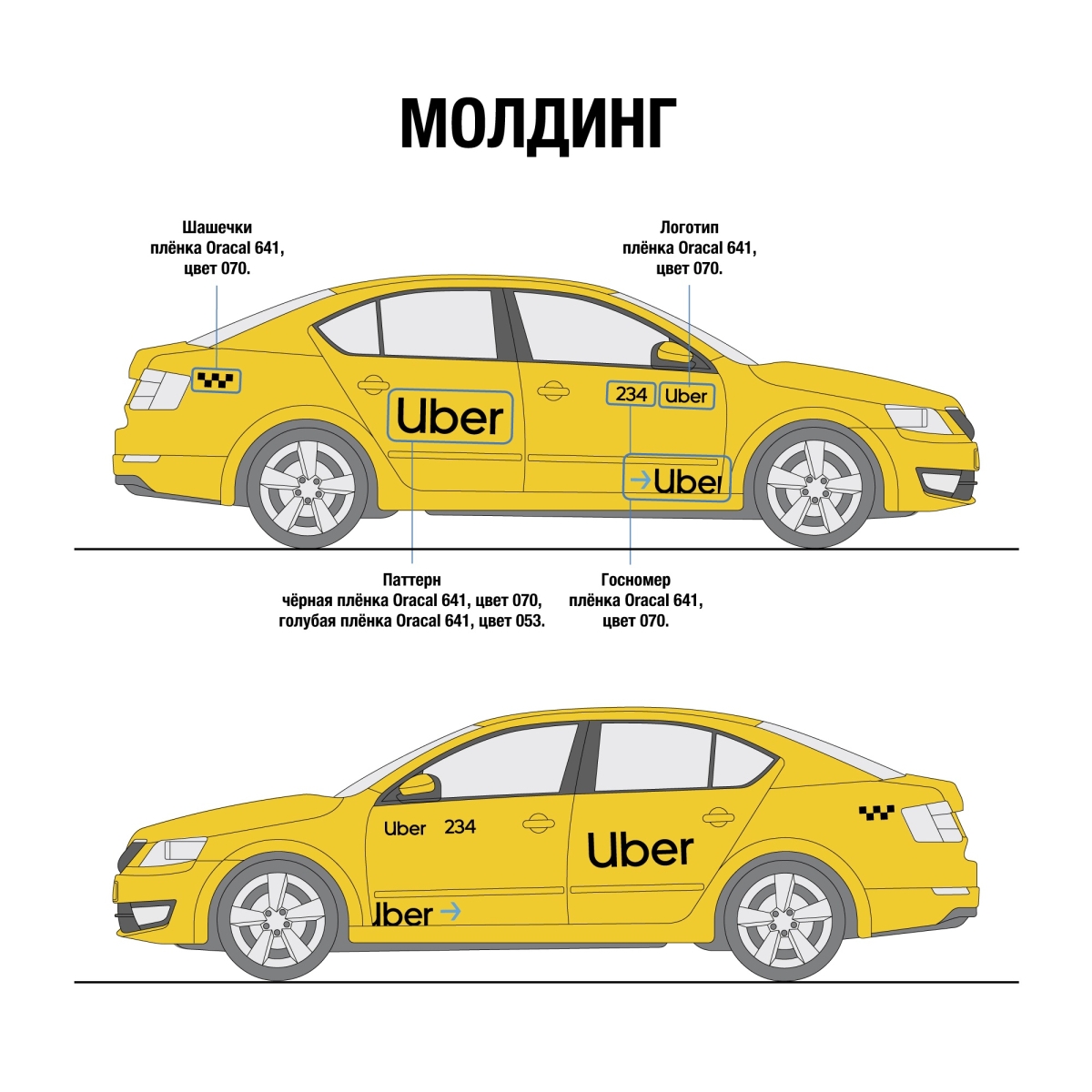 Наклейки Uber для желтых автомобилей